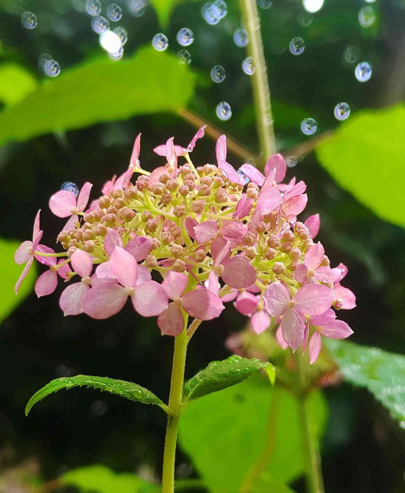 雨パワーのつぶつぶをアナベルさんが吸い込んでる✨と思ったら、