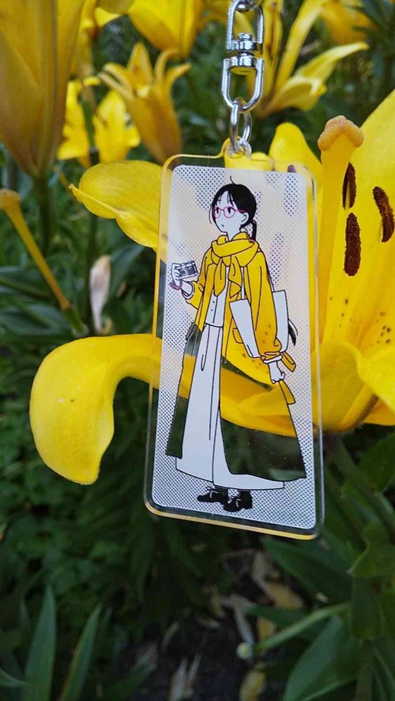黄色が鮮やかなユリ、ももこさんのロングコートに大柄なプリントに🟢🟡
