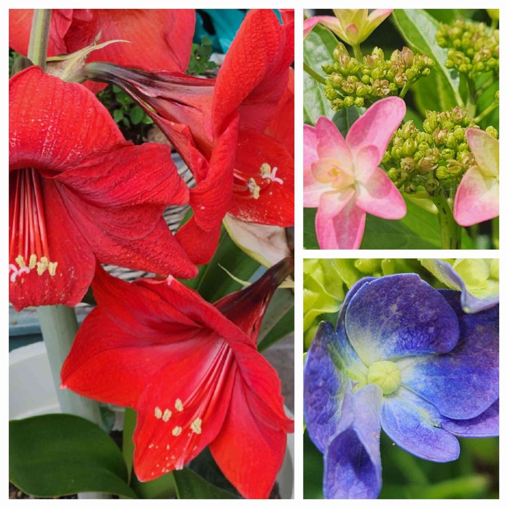アマリリスが、2本目も開花中。豪華です。一気に、咲いてくれたのは、初めてで嬉しいです。見切り品のアマリリスの球根、3年目ですが、豪華です。