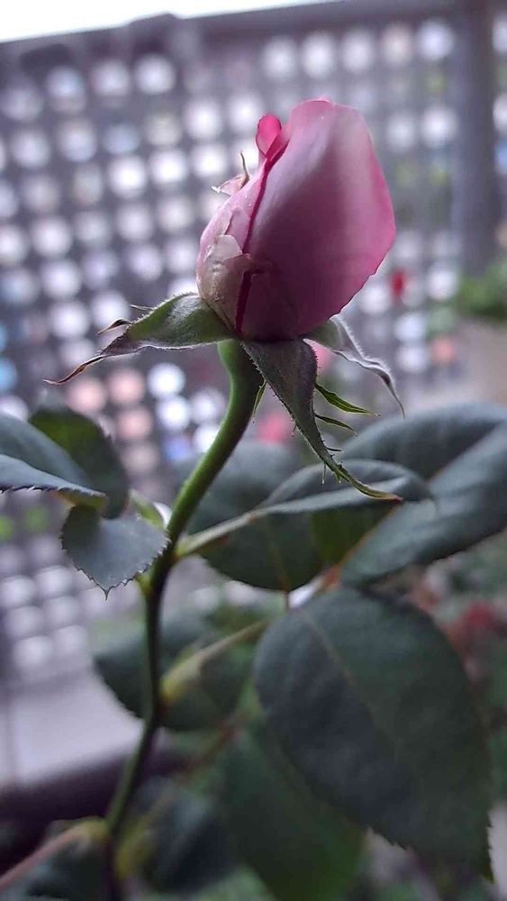 おはようございます今朝のブルームーンです。3つの蕾の1番高い位置の蕾がほぐれてきました。