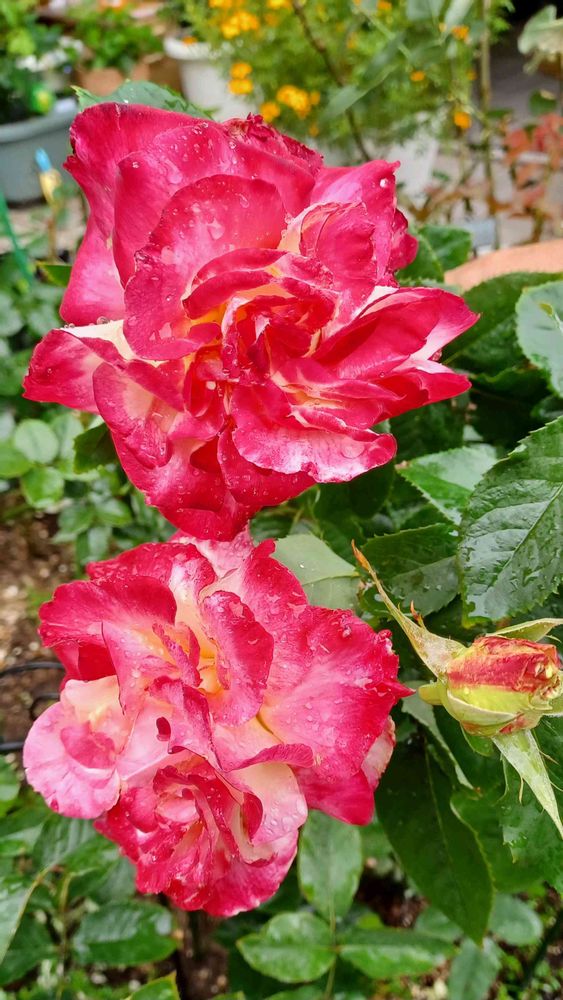 一斉に終わってしまうのも寂しいですので☝️だけ蕾を🤏ました😁…仲間外れでスネたのかクリーム色と赤が絵の具を塗りたくった様にごちゃ混ぜ😅