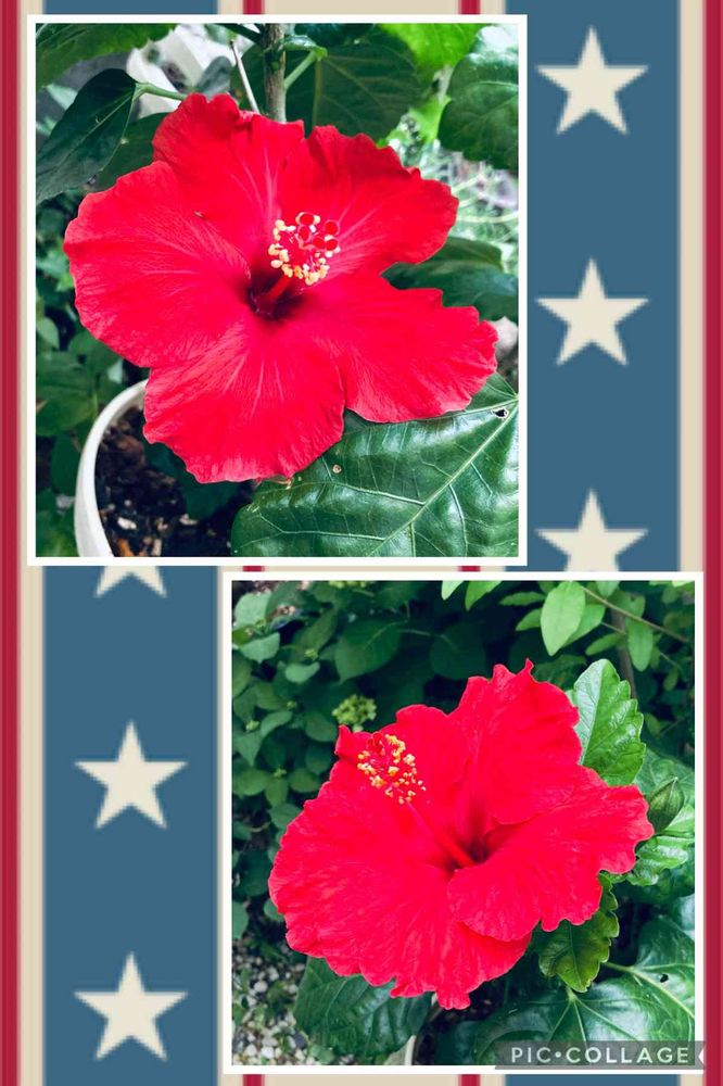 真っ赤なハイビスカス🌺 同時開花ですね。🙆🎶🌺
