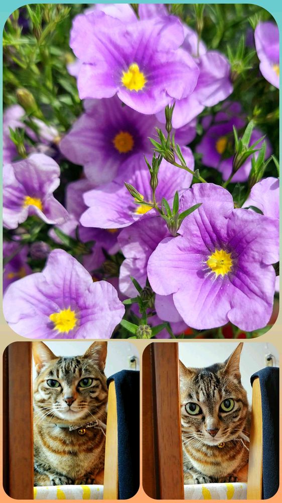 電話をしていて自分の名前が出てくると前のめりで聞き耳をたてるてんちゃん😸とニーレンベルギア💠💠悪口は言ってないよ~😆🎶