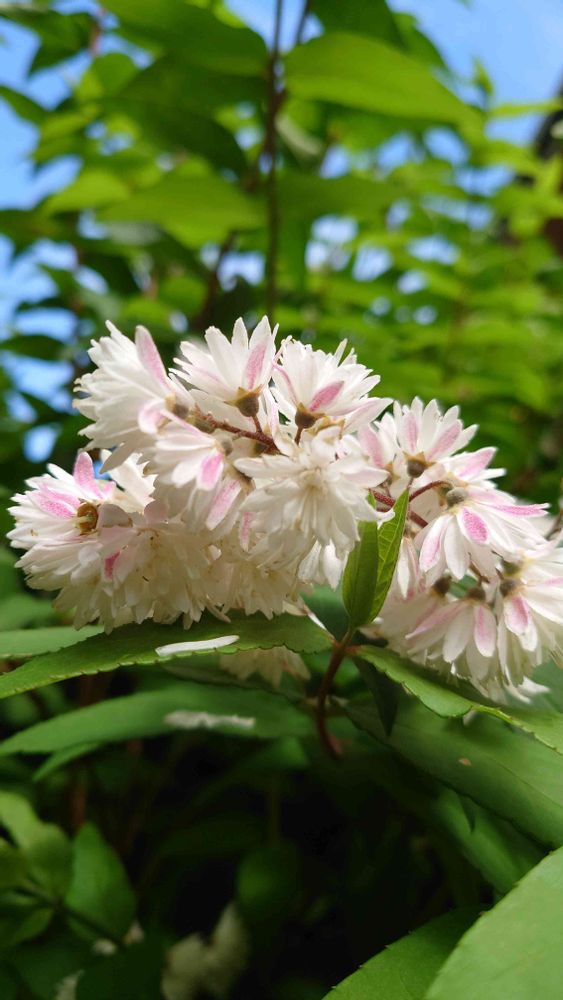 昨年秋にかなり切ったから、今日の花で見てみたら、ポツンポツンと咲いてました〜咲き始めのピンクが可愛いかったのに、撮り忘れてたよ〜💕更紗ウツギ🤍