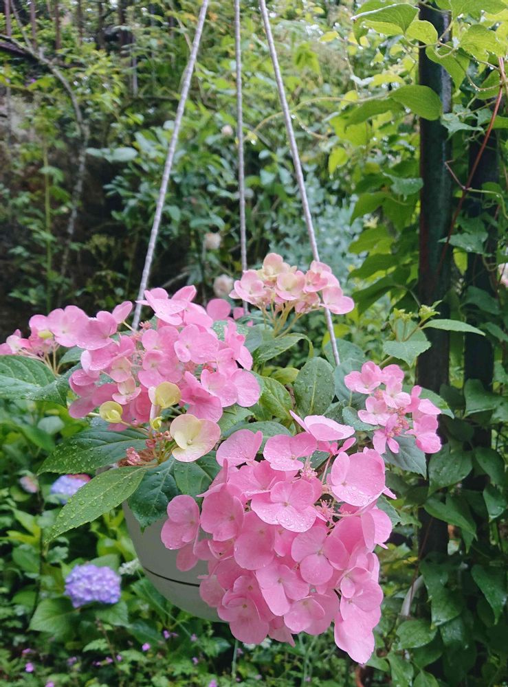 こんばんは✨可愛い〜(*´艸`)💕アジサイを吊り鉢にするなんてさすがです(⁎˃ᴗ˂⁎)🌱✨この子は垂れ下がるアジサイなのかしら😄🌱💖ピンク色もとても可愛らしいですよヾ(´︶`*)ノ♬💕