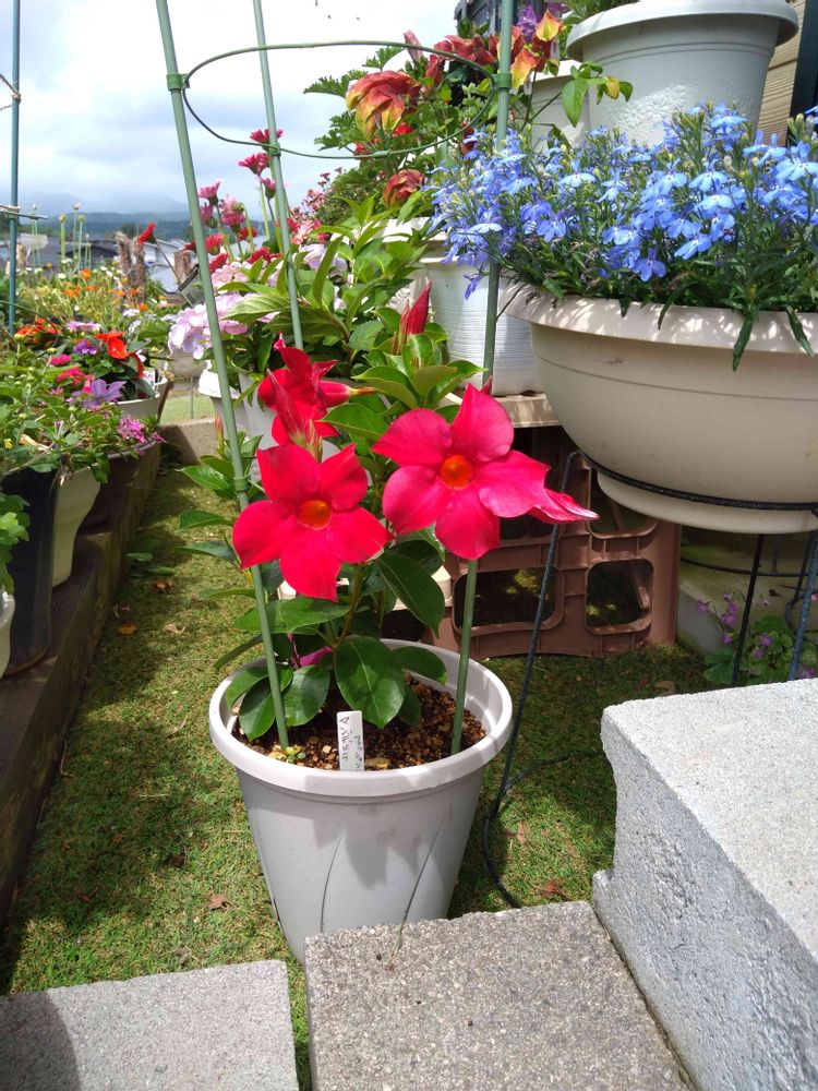 広い庭,マンデビラ ファッション レッド,赤い花の投稿画像
