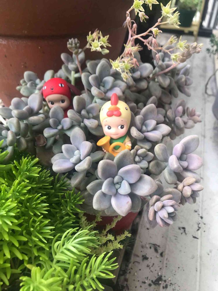 多肉ちゃんに( ´ノω`)コッソリ隠れて何見てるんだろ〜なんかすごくかわいいおふたりですね(*´ ˘ `*)✧︎エヘヘ