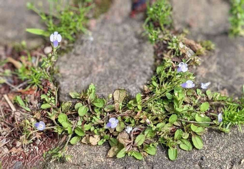 昨日 お玄関から池へと続く敷石の隙間に 今迄ここで見たことの無い薄紫の小花が咲いていました