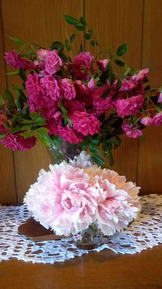 茎が10センチの八重咲きの芍薬4輪さしてます。。