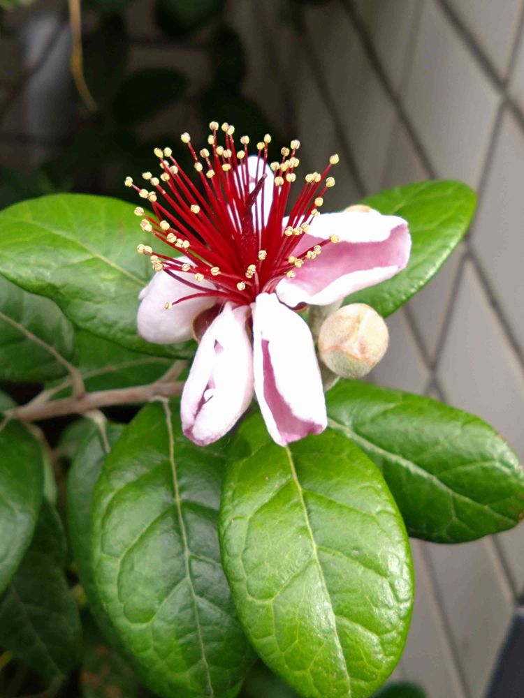フェイジョアのお花、道沿いの花壇で咲いていました🥰