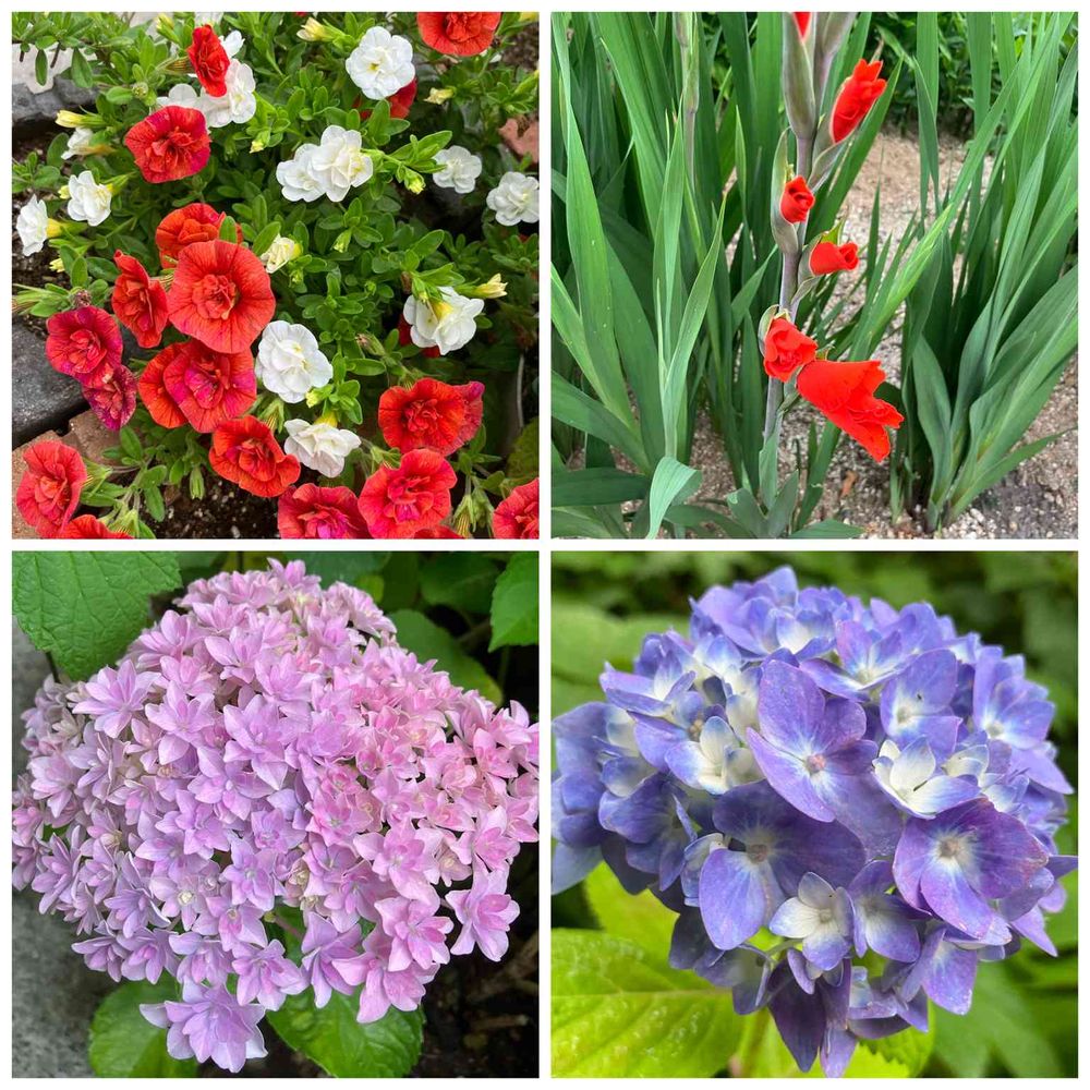 まりもさんのアジサイ,グラジオラス,八重咲カリブラコアの投稿画像