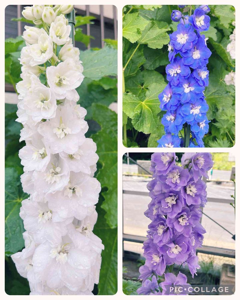その園芸店で、小さな苗で購入したデルフィニウム3色🤍💙💜