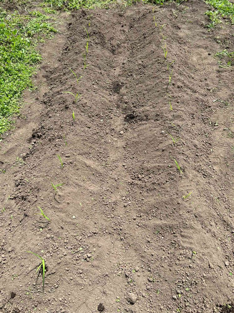 種から育てていた陸稲ネリカ米の苗を畑に植えました。