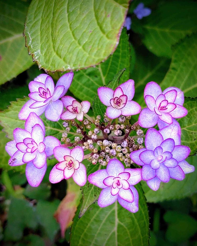 額の縁に色が付いてて素敵な紫陽花ですね✨