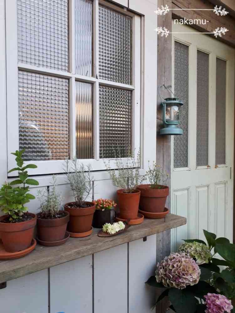 ハーブを鉢に植え替えして1列に並べてスッキリしました。🌿🌿🌿
