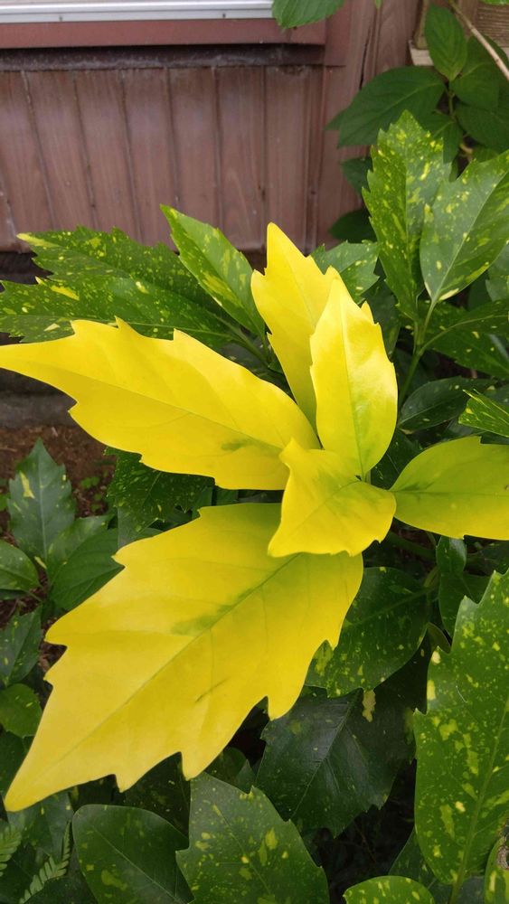 アオキの葉の一部が黄色くなって遠くからも目立ちます。