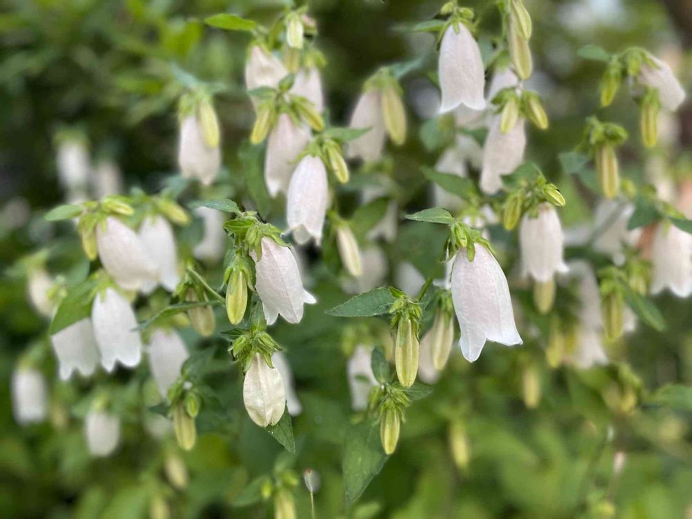 ホタルブクロ咲きました✨清楚で美しい花🥰去年の10倍くらいに増えたかも!オリーブの木の下が気に入ってくれたみたい😊