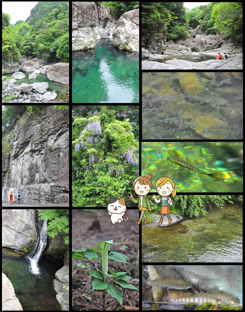 みたらい渓谷は川に下りやすくて透明な水に足をつけて涼んだり💦