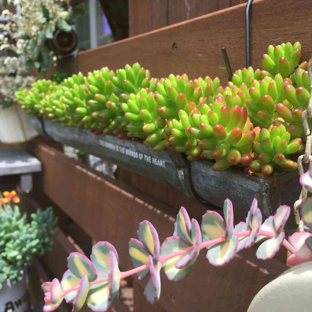 凄〜い!!綺麗に整列してる虹の玉♥️可愛さ倍増✨雨樋プランターの使い方素敵です。:+((*´艸`))+:。