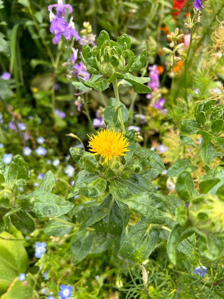 畑入り口左側の花壇で、紅花が咲き始めました。昨年種を蒔いたのですが、無事育ったのは3本だけでした。蕾は沢山ついているので花は多数楽しめそうです。二十四節気、七十二侯で、5月26日が紅花栄(こうかさかう,紅花が盛んに咲く頃)です。