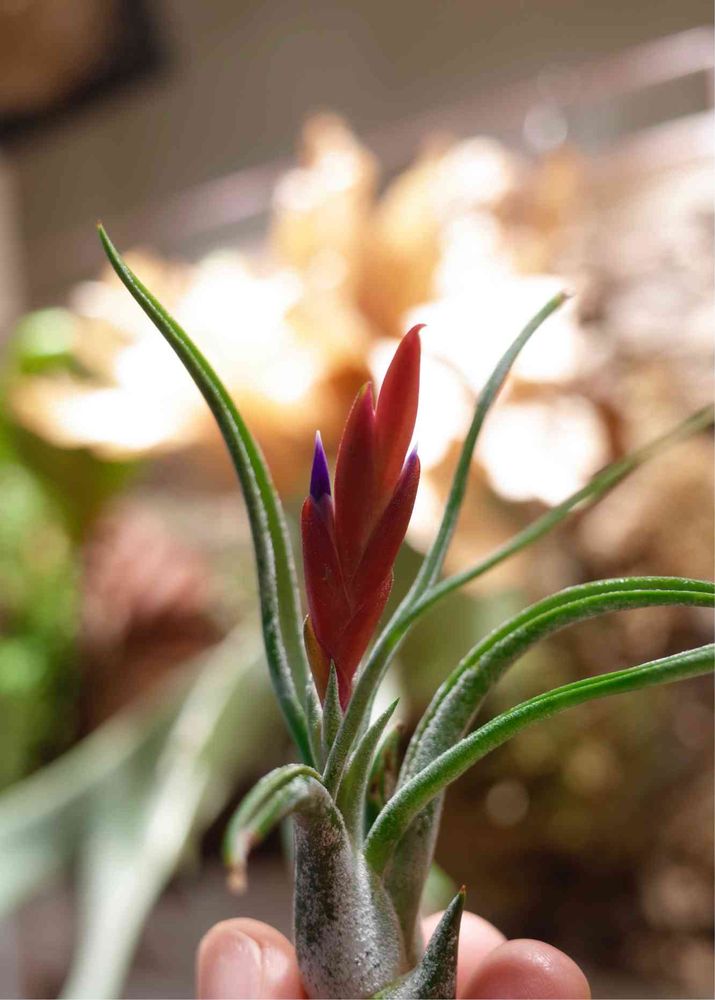 やっとチランジアの花が出始めました😵蕾が着いてからが意外と長い…。ダメもとで受粉やってみようかな😊