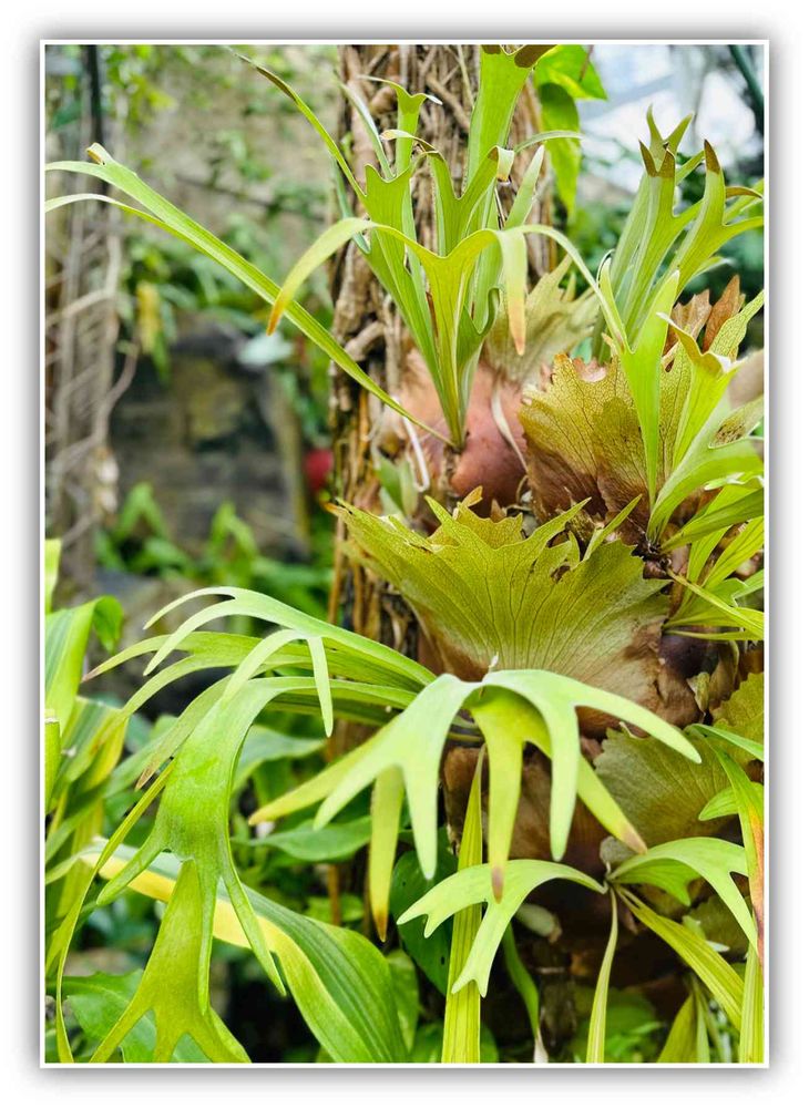 数十年生きた大型種のビカクシダは人の背丈を超える事もあり、まさにモンスター級のシダ植物です。
