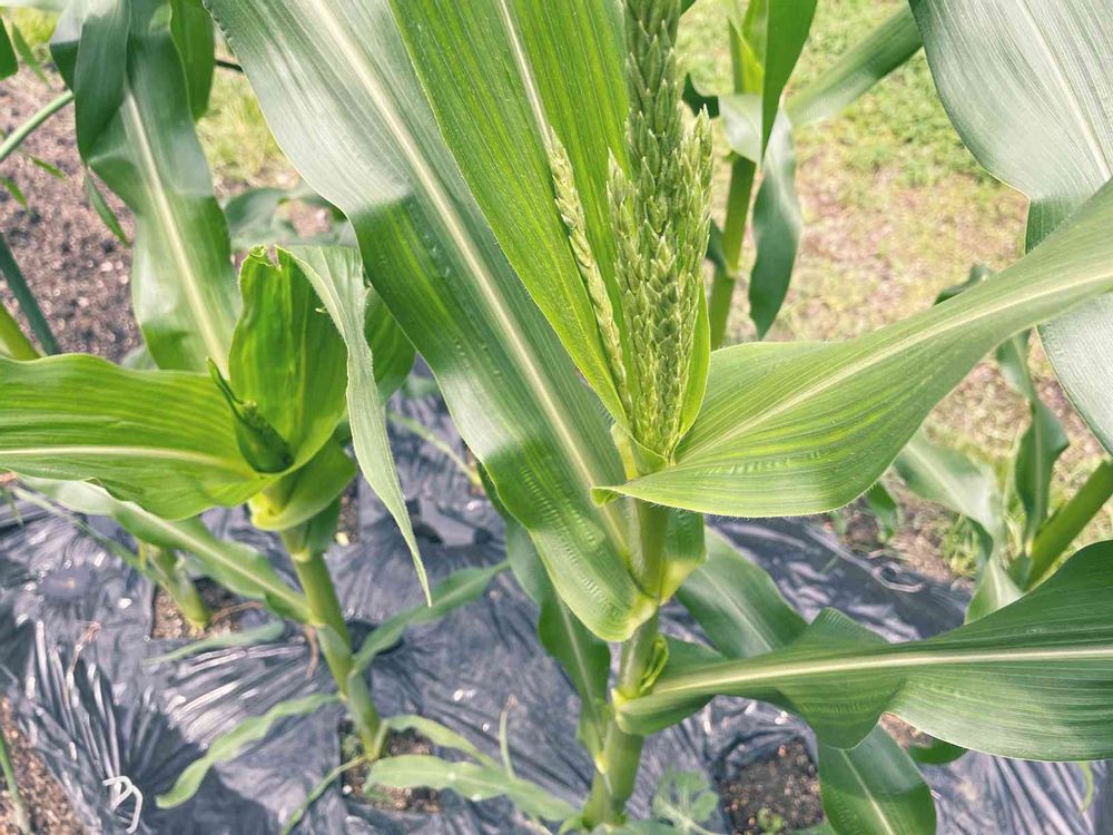 とうもろこし、昨日の雨で1本だけ倒れてしまいました