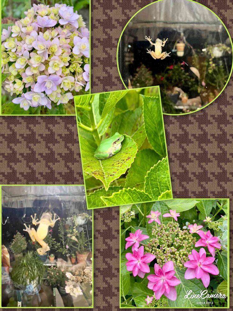 アジサイの葉っぱでパシャリ〜🐸