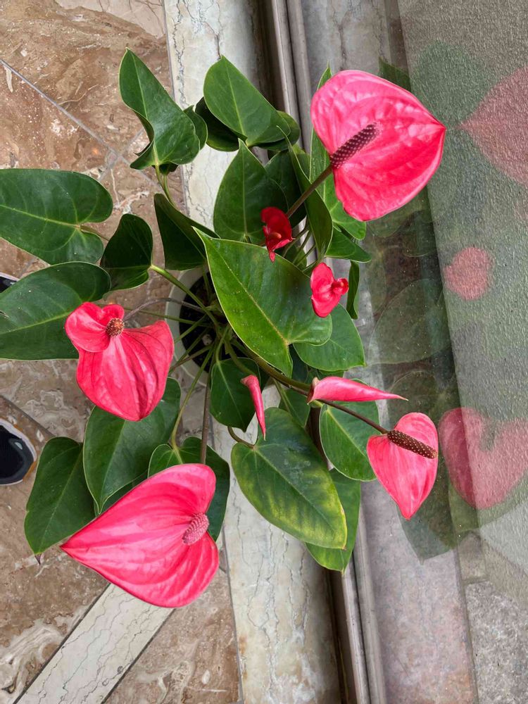 昨日、宝塚駅前のワシントンホテルでランチをした時出会った「アンスリューム❣️」私は、うまく栽培しきれなかったのですぐ目に止まりました!🌸🌸🌸