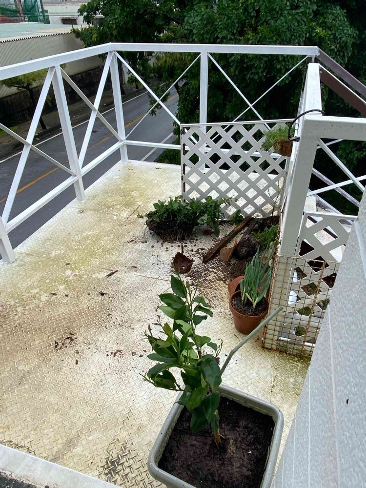 ほぼ一年前、同じくらいの時間に折からの大雨の最中突然大きな音がして、外に出てみたらこの状況でした😰。どうやら竜巻🌪️が通過したらしいです。木製の縁台にハーブや草花の素焼き鉢🪴を並べていたのですが、跡形もなく吹き飛ばされていました。生き残ったのは大鉢だったレモンとダリアの球根だけでした。それからしばらく植物を増やす気になれなかったのですが、東京の別宅でグリーンインテリアに目覚め、熱冷めやらす、宮古島でも再開したところです🥰。