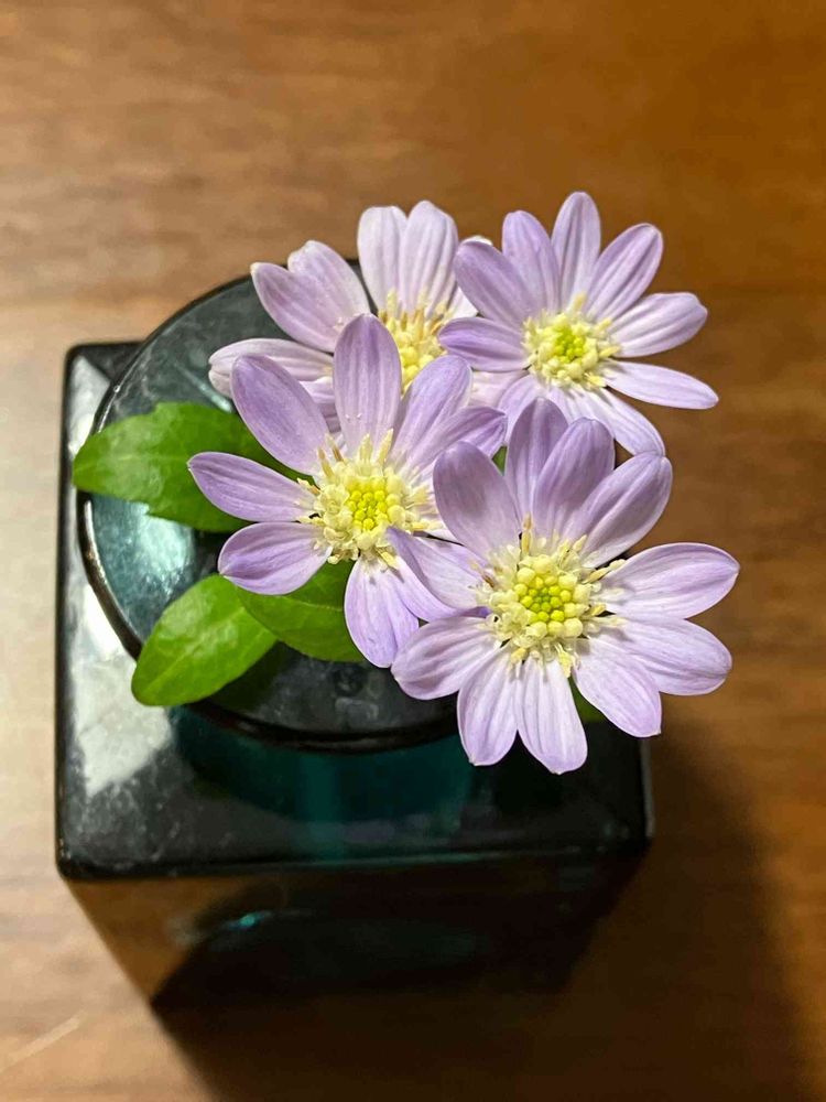 ミヤコワスレの可憐さが存分に出てて、花器も素敵💜💜