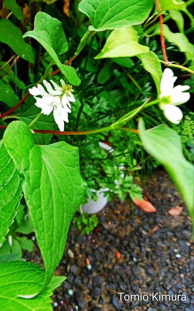 小さな庭の「八重咲ドクダミ」が開花しました。