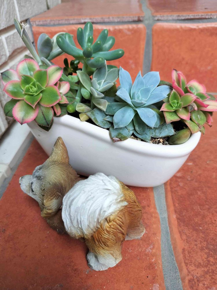 多肉ちゃんの寄植えと、かわいいお尻のワンちゃん♡