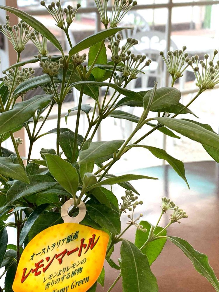 レモンマートルさん🍋葉っぱを紅茶に浮かすとレモンの香りがするらしいです🍋ゆっくり、ホッコリのティータイムに使える植物さん🍋はじめまして🍋😊🫖