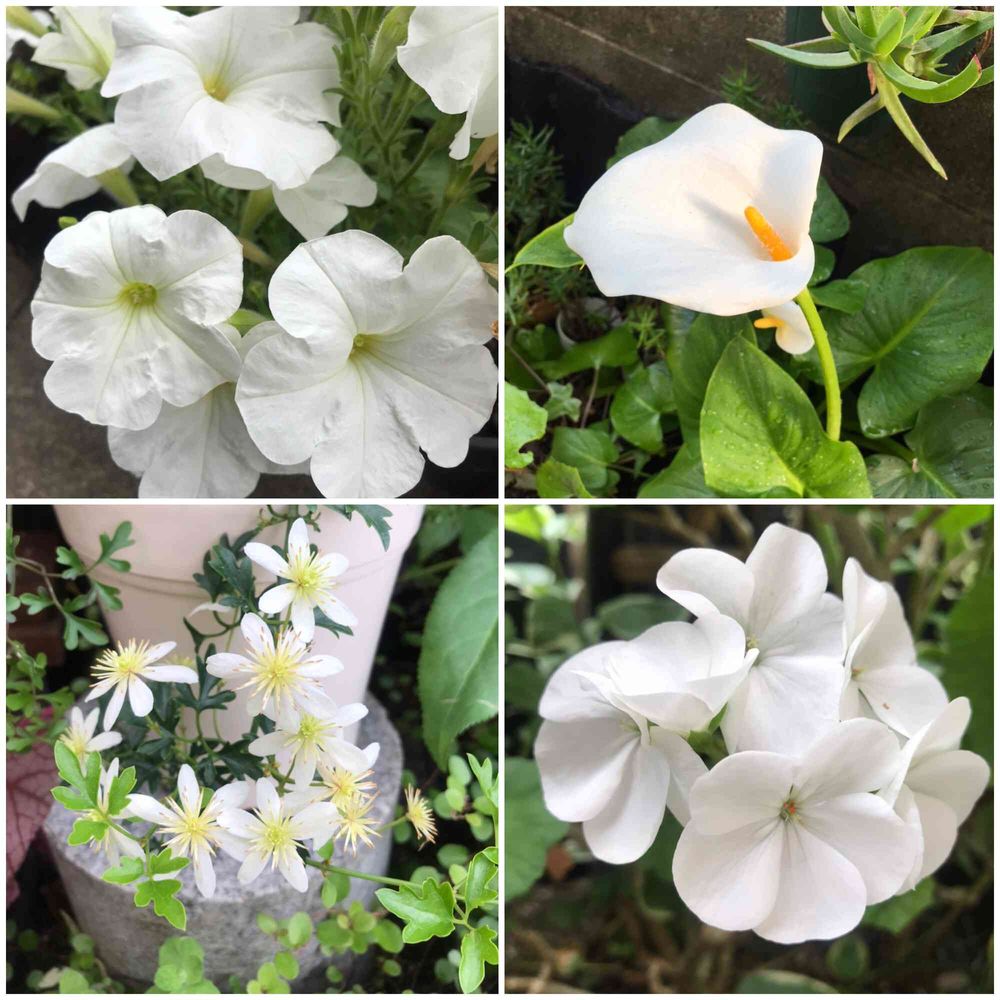 ペチュニア カラー ゼラニウム クレマチス 庭に咲いてる白いお花達😘