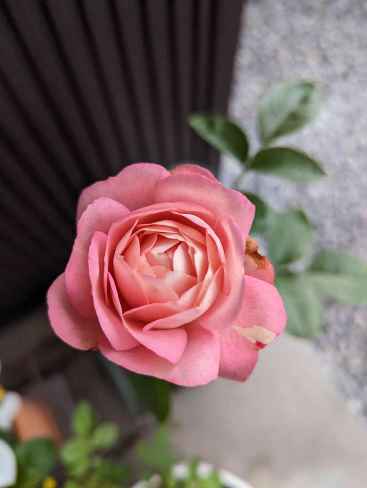 アクロポリスロマンティカさん。立派な新苗を京成バラ園から連れ帰ったコ。ひとつだけ咲かせました。かわええ♡