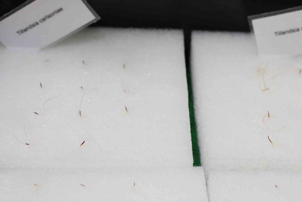 ウレタンブロックには切れ目が入っていて、種を埋め込む構造になってるのですが、今回はそこに綿毛を差し込んで、種子本体が表面に出るようにしました☺️