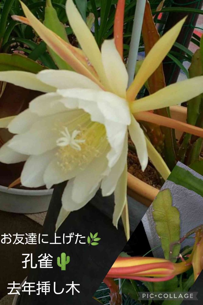 孔雀🌵さん🌿、下から蕾が出て来たと聞いてた🌵から花が咲いたと写真が送られて来ました🎶