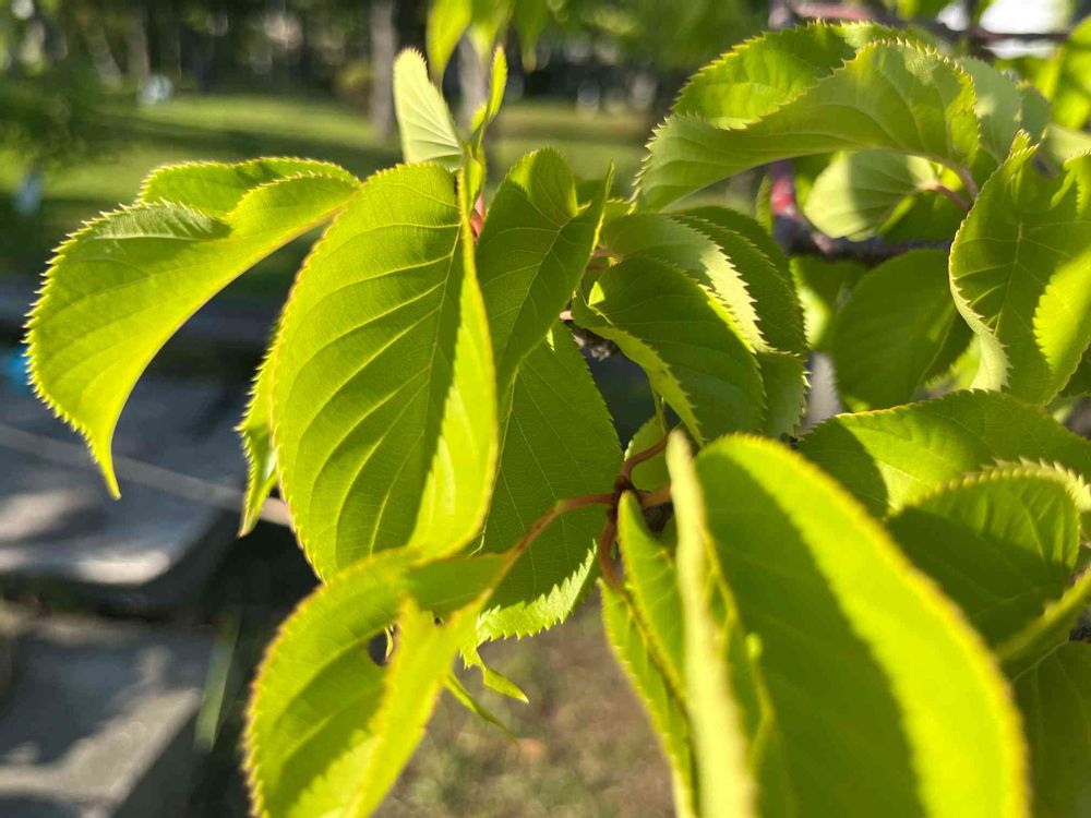 蝦夷山桜の葉っぱ。ギザギザが小さくて細かい。