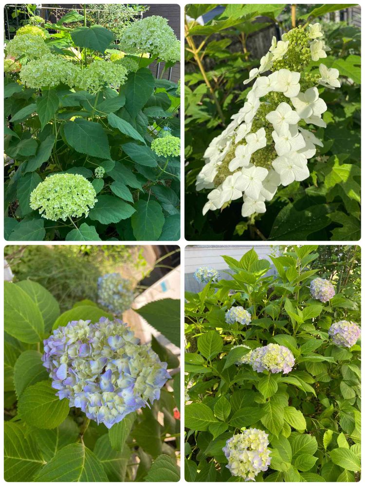 薔薇と入れ替わるように、紫陽花が咲いてきました💚🤍🩵