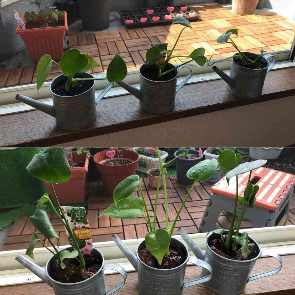 左からリビング、玄関の中トイレにそれぞれ置いといたら玄関のがいちばん元気でリビングの窓際があんまり。。