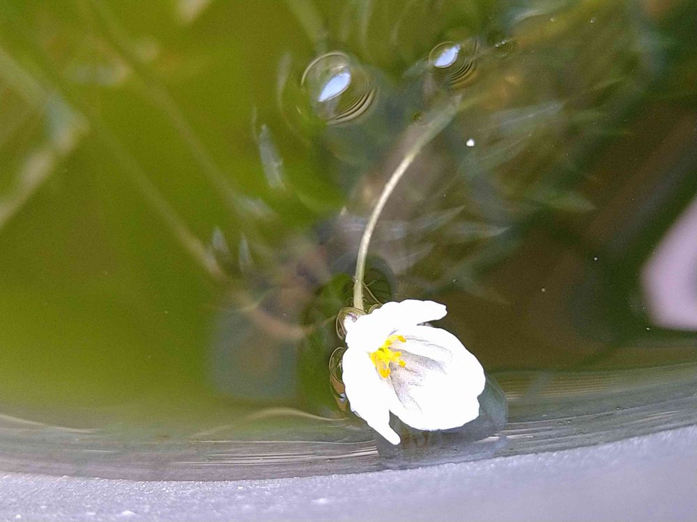 わが家のメダカ鉢に水草の小さな白いお花が咲いていました🌿🤍🌿🤍