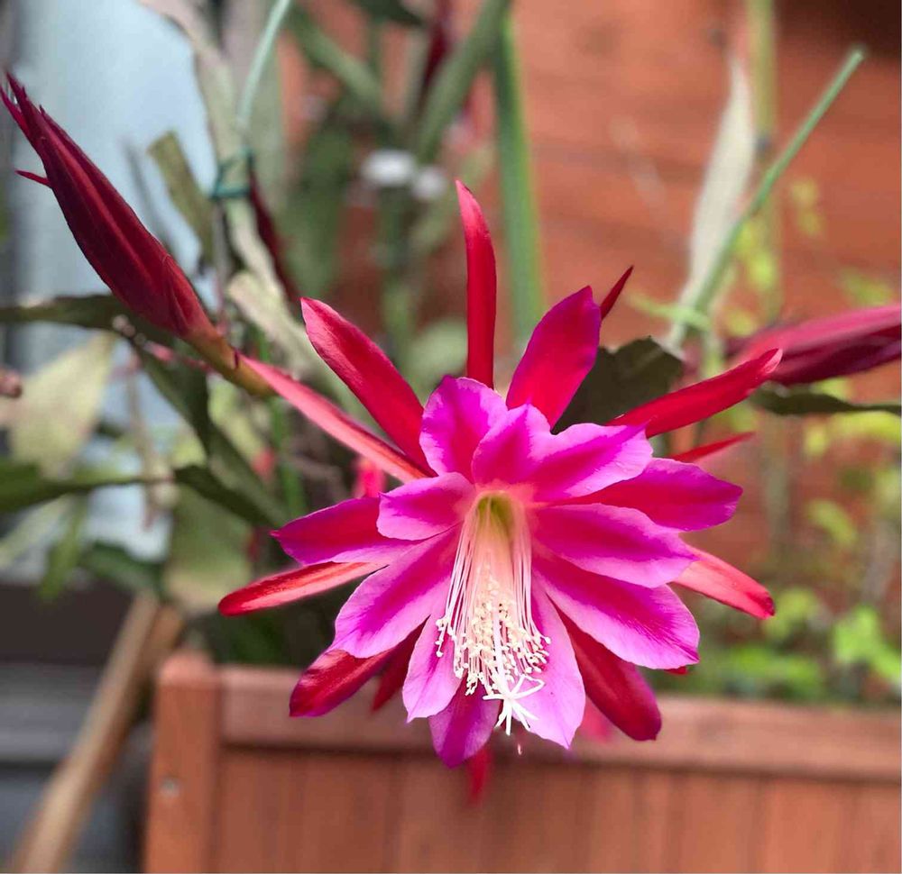 ベランダのクジャクサボテンが開きました😊 他にもたくさんの蕾があるので