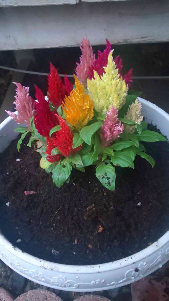 4月に買ったケイトウがわさわさと茂っていたので、大きい鉢に移しました。