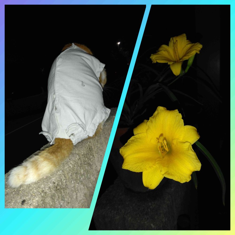 茶々丸のオケツと夜に開花したヘメロカリス2輪…