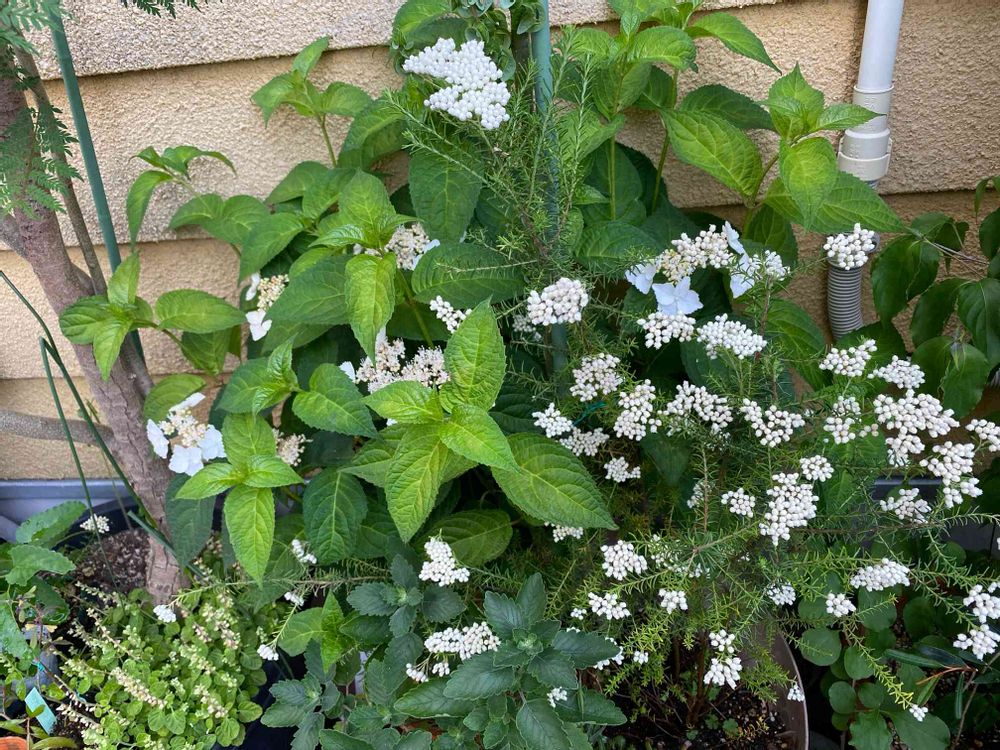 今は真っ白な山紫陽花、成長が旺盛なので、花後バシバシカットしています✂️