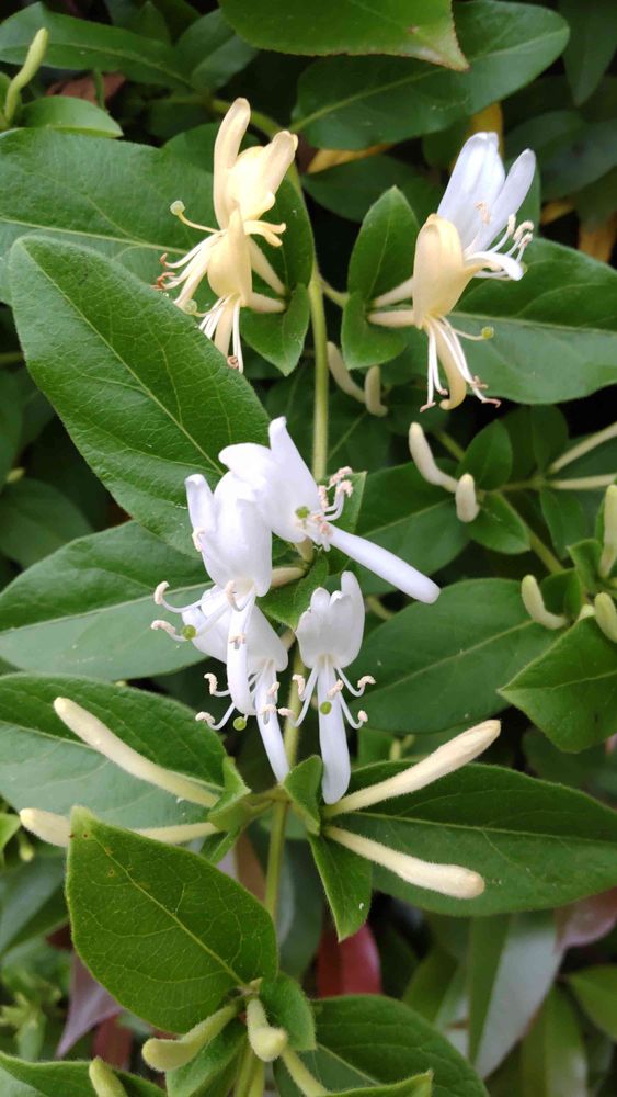 我が家のスイカズラは東の生け垣のレッドロビンのところにいつの間に生え😆