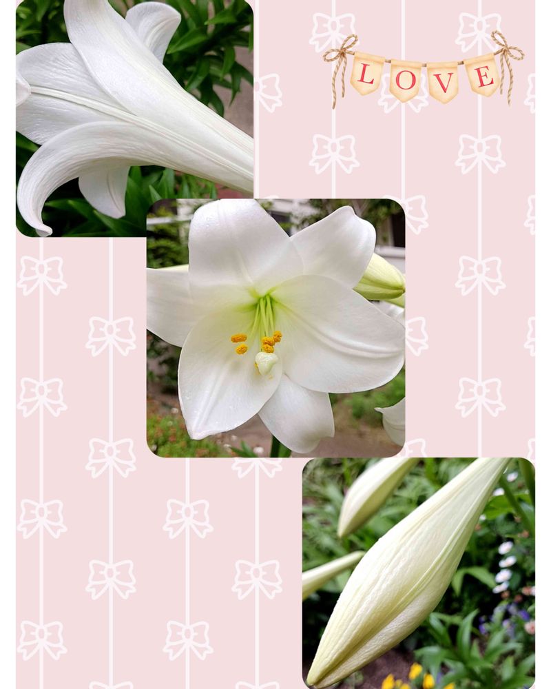 テッポウユリ コラージュしてみました。 蕾もスマートで綺麗でした。