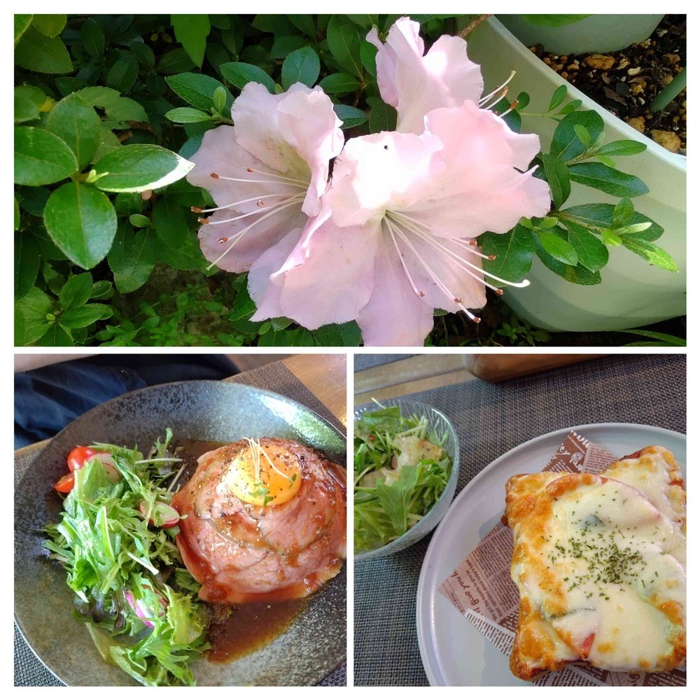まだささやかに咲いてた庭のサツキと昨日のランチ🎵