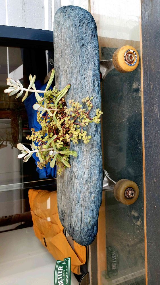 流木+スケートボード+多肉植物のコラボは、私のような凡人には発想出来ませ~ん🐈❣️